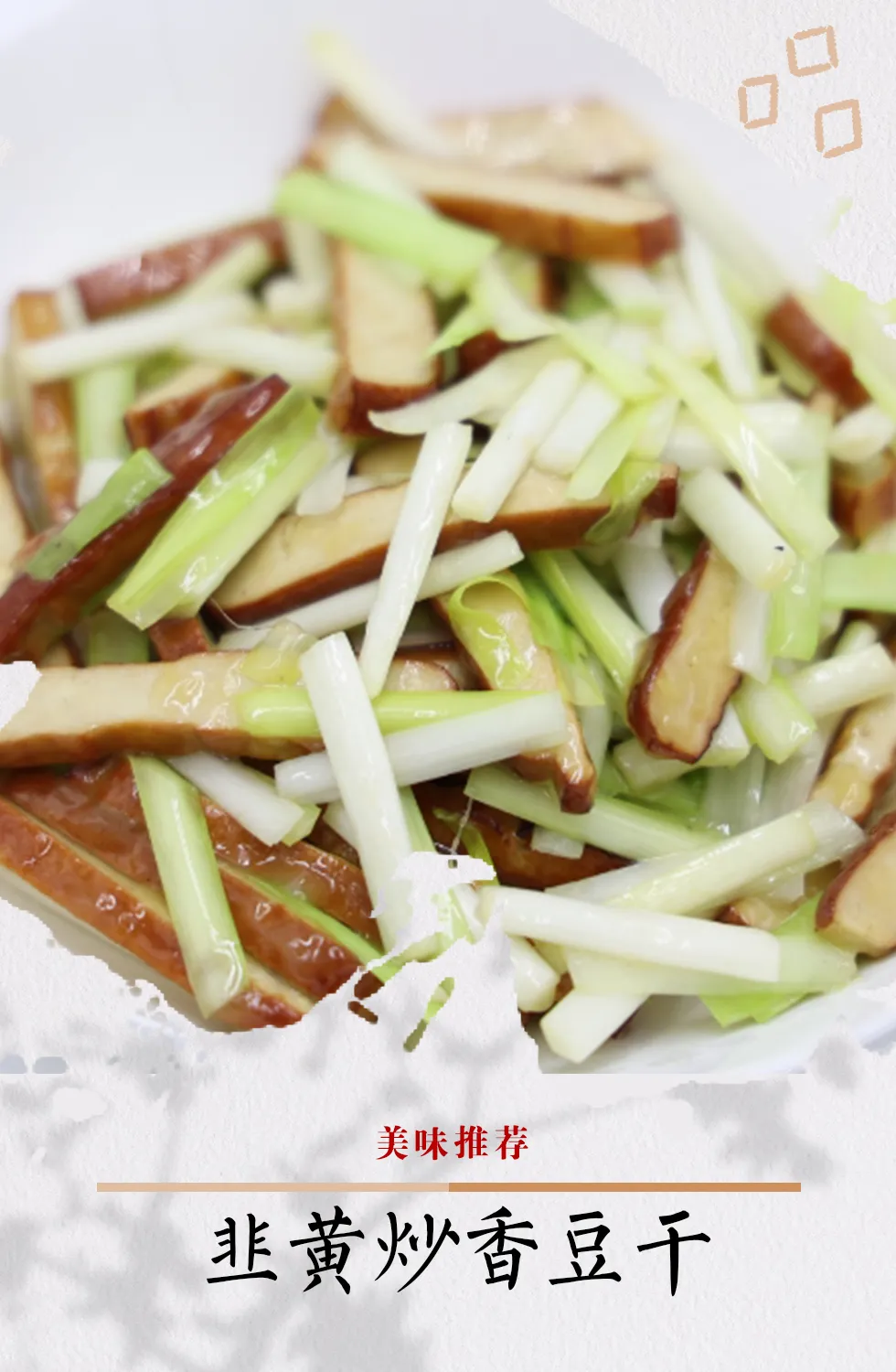 Stir fried dried tofu with leek: 50g leek, 50g dried tofu