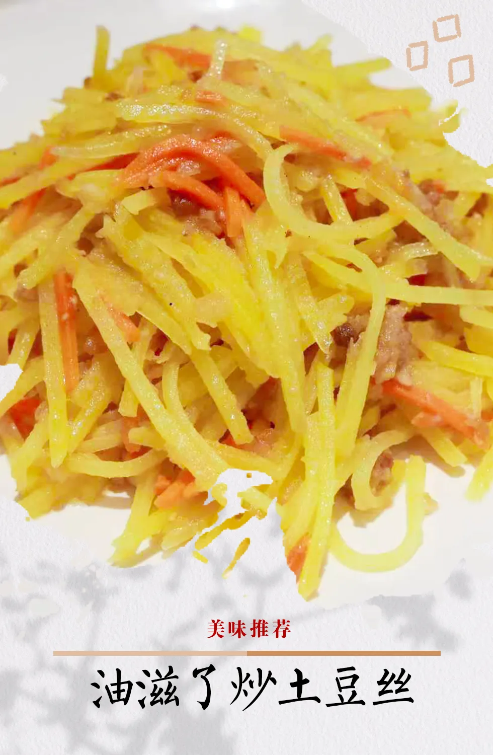 Stir fried shredded potatoes with oil: 30g with oil and 70g with shredded potatoes